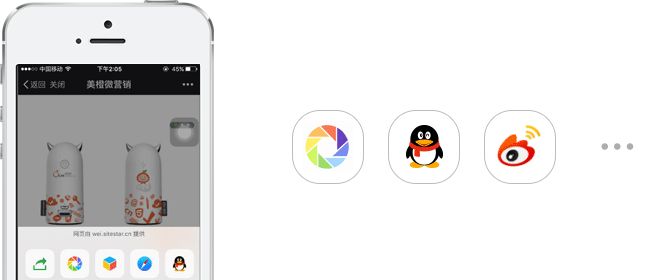 一键分享微博、微信 、QQ社交平台,快速传播引流量;总店任意添加图文推广素材,分销商可直接获取,推广省时又省心。